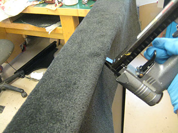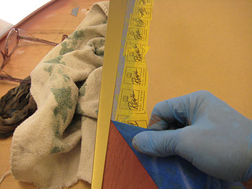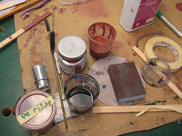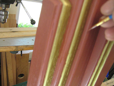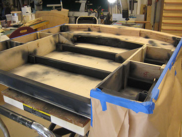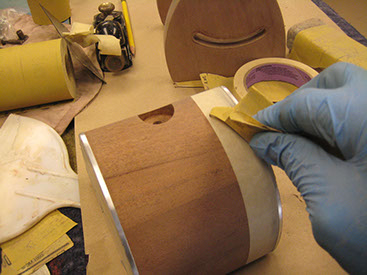 After a final sanding with 400 grit sand paper, the wood is sealed and then sprayed.