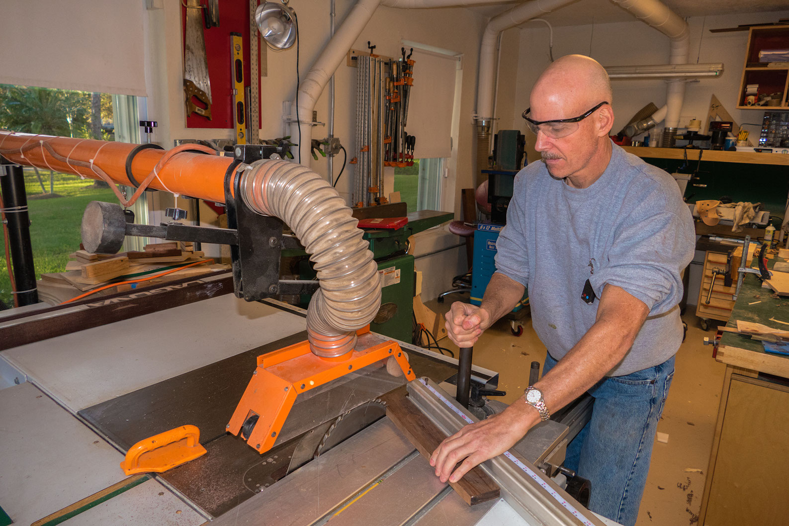 Fortunately, my high school in Miami had a very extensive industrial arts department back in the early 70’s. That is where I met someone of great influence, James Pete. As my teacher and mentor, he took me under his wing and encouraged me to excel. His personal works of wood carvings and furniture were so impressive that he inspired me to pursue my passion of woodworking. By my senior year, I completed three projects: a veneered cherry box, a walnut coffee table, and a classically-designed credenza, which is still used in my home.